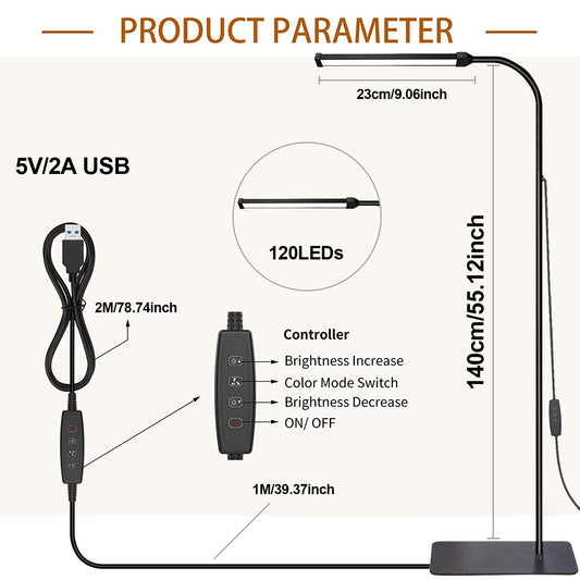8W Dimmable LED Floor Lamp Adjustable Gooseneck Clip-on Light