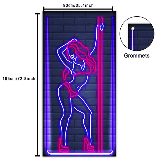 Neon Pole Dance Banner Backdrop - Sexy Girl Theme Decor for Parties