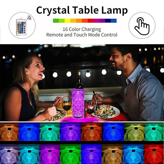 Kristall-Tischlampe, wiederaufladbares Nachtlicht